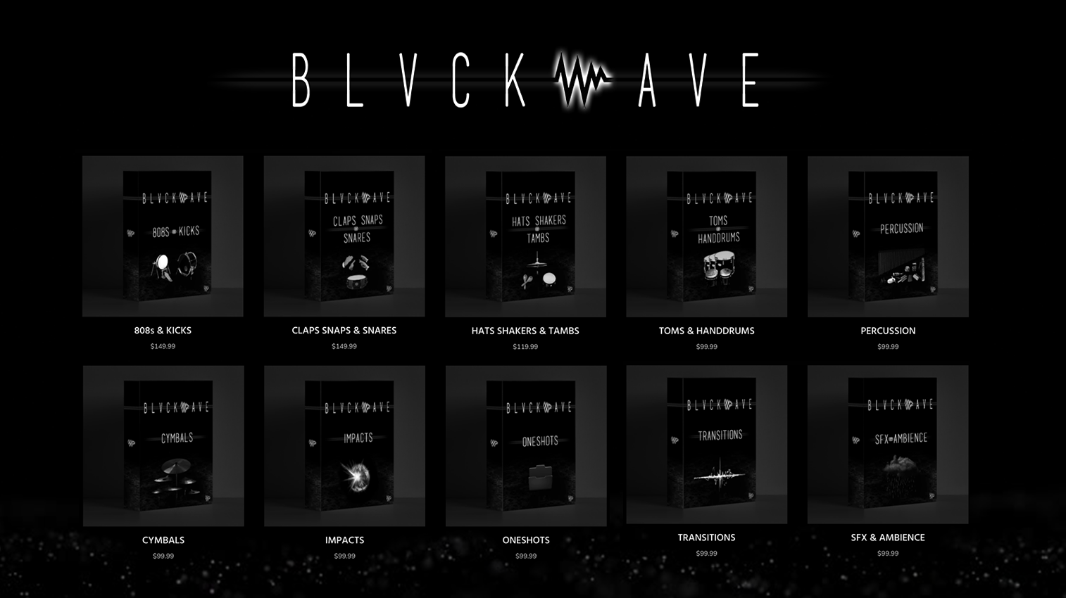 BLVCKWAVE CORE COMPLETE contains ALL of our CORE libraries in their entirety! V.001 - 808s & KICKS, V.002 – CLAPS, SNAPS, SNARES, V.003 – HATS, SHAKERS TAMBS, V.004 – TOMS & HANDDRUMS, V.005 - PERCUSSION, V.006 – CYMBALS, v.007 – IMPACTS, V.008 – ONESHOTS, V.009 – TRANSITIONS, and V.010 – SFX & AMBIENCE.