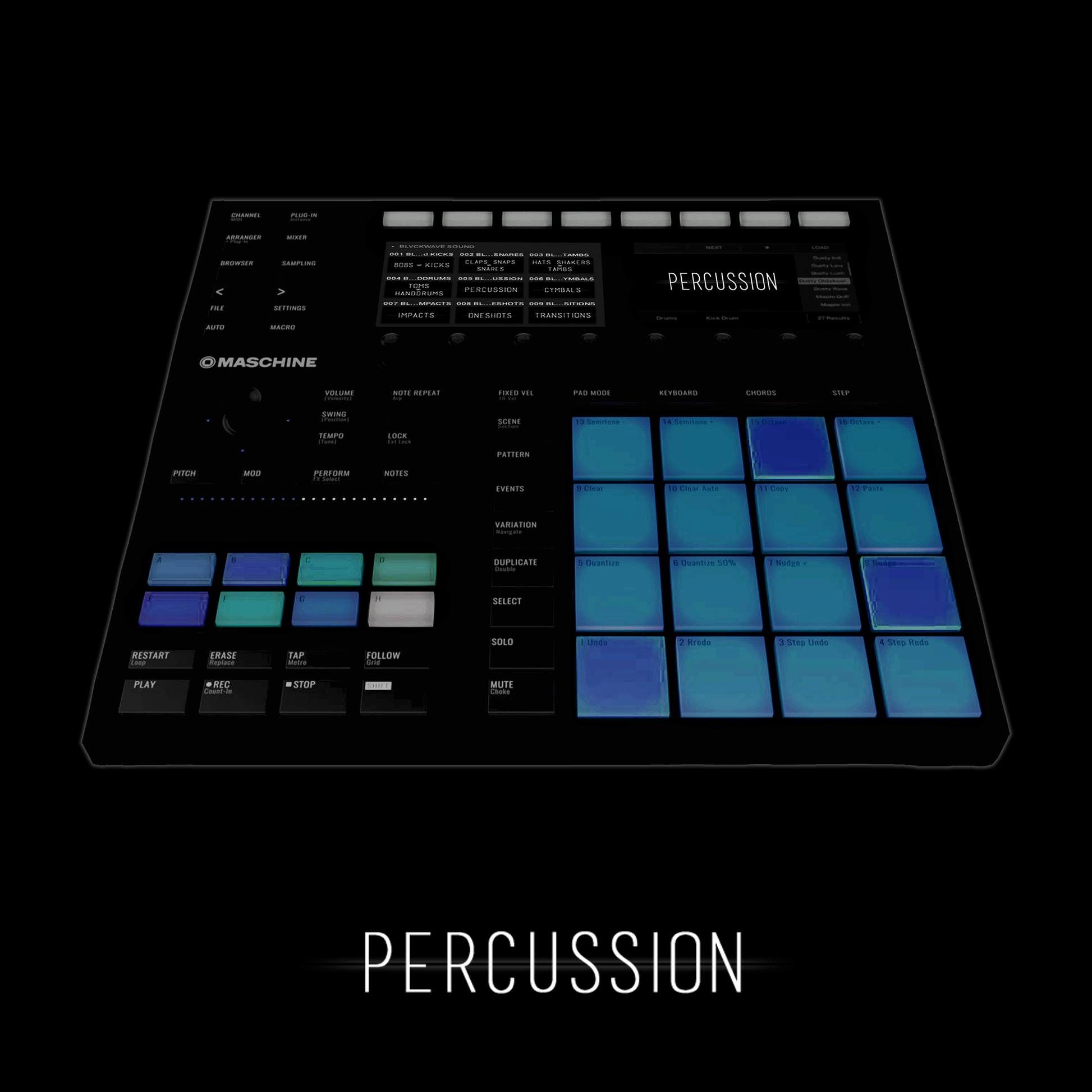 BLVCKWAVE “PERCUSSION” I suppose percussion elements could be considered anything you hit or strike but for this library we kept it simple and PERCUSSION simply means all the odds and ends of one-shot drums that don’t fall under any other main categories we offer libraries in.